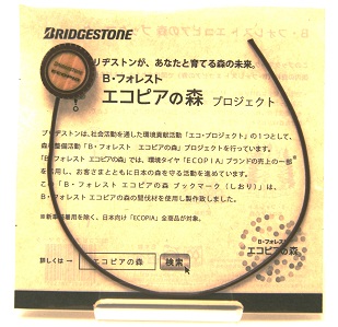 株式会社ブリヂストンは、「B・フォレスト エコピアの森」プロジェクト※1の森林整備活動で発生するひのきの間伐材※2を有効活用した‘しおり’を、ノベルティグッズ(非売品)として制作しました。「B・フォレスト エコピアの森 ブックマーク」という名称で、当社テレビCMなどでおなじみの「TAIYA CAFE」と連動したデザインの‘しおり’です。