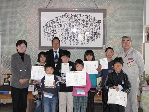今回は当2工場が、より多くの子どもたちに当コンクールにご参加頂くことを目的に、日頃からおつきあいのある近隣の小学校を対象に「北関東生産本部長賞」、「工場長賞」、「工場賞」を創設し、受賞作品を決定しました。2月28日(火)に栃木工場近隣の大原間小学校と波立小学校で、3月8日(木)に那須工場近隣の稲村小学校で、受賞者の表彰を行いました。