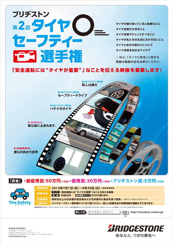 株式会社ブリヂストンは、交通安全やタイヤの日常点検の推進につながる動画作品のコンテストである第2回「ブリヂストン タイヤセーフティー選手権」を開催します。本日、特設WEBサイト