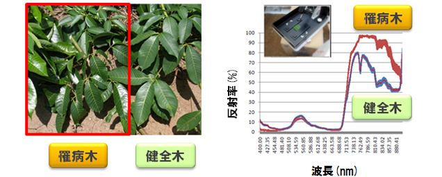 今回確立した技術は早期の病害診断ツールとなる技術で、「DNAを利用した病原菌検出」、「ラテックスの成分分析による診断」、「葉表面スペクトル・温度の測定による診断」、「衛星画像の解析による広域の健全度診断」の4つです。これらは植物病理学、分子生物学、生化学、分析化学、リモートセンシングといった複数領域の技術であり、開発した技術の応用により、目視に頼らない簡易的なツールを用いた早期の罹病診断や、土壌中の病原菌の検出を定量化することが可能になりました。