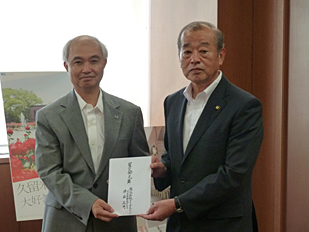 左:峯尾啓司 久留米工場長、右:楢原利則 久留米市長