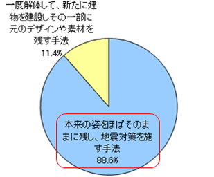 ■歴史的・文化的建造物の地震対策、解体より元の姿活かして 88.6%