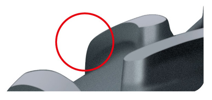 ショルダーブロックの角に丸みをつけることでうね※を崩さず、耕作地及びタイヤへのダメージを軽減。