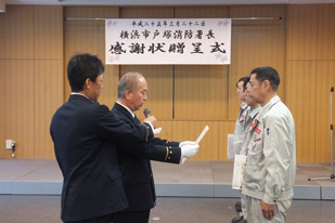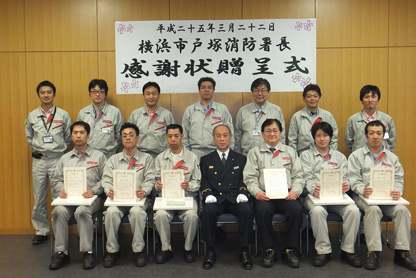 横浜工場 戸塚消防署より人命救助に対する感謝状を受領
