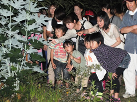 栃木工場は2013年4月に近隣保育所の子どもたちによるホタルの幼虫の放流会を実施しましたが、今回の観賞会ではそのホタルの成長した姿を見ることができました。この取り組みは子どもたちに地域の自然環境へ関心を持ってもらうため2010年に開始され、今回で3回目となります。