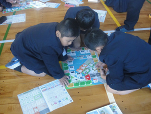 ブリヂストンは全国の工場周辺地域の小学校を対象として、2011年から「ブリヂストン環境ものづくり教室」を実施しています。「ブリヂストン環境ものづくり教室」は、講義を通じて子どもたちに楽しみながら、タイヤ作りの仕組みや環境に対する取り組みについて知って頂くことを目的としています。また、工場経営を疑似体験できるボードゲームを行い、環境に配慮しながらものづくりをする大切さを学んで頂きました。