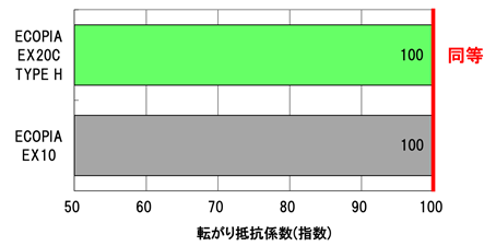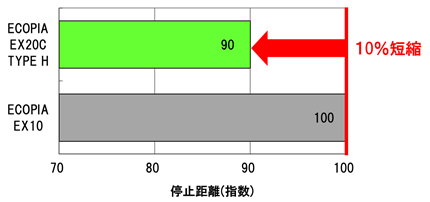 停止距離(平均) (ECOPIA EX20C TYPE H) 31.0m、 (ECOPIA EX10) 34.5m