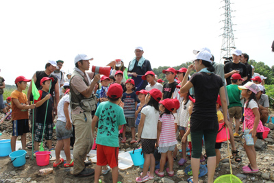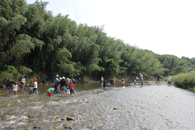当日は、平和堂でキリン製品を購入し企画に参加申し込みを頂いた方々、及び上述企業の従業員、計131名にご参加頂きました。観察会では、彦根工場に隣接する芹川で様々な種類の魚や水生昆虫等を見つけることができ、豊かな水環境を確認できました。