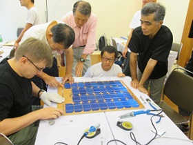 そして今回、当社の事業を活かして東北復興の後押しをしたいと考え、また、これまでも従業員ボランティアを派遣していたことから、手作り太陽光パネル講習会を主宰する同企業組合に対して、当社製品のEVAフィルムを寄贈することを決定しました。なお、この講習会は海外の無電化地域からも注目されており、10月末にフィリピンで開かれたアジア青年エネルギーフォーラムでは、同様の講習会を通じて、国際的な社会貢献、人材育成、アジアの貧困地域支援を行うことが決定されました。今後、同企業組合によりフィリピンやネパール、ラオスなどアジア各地域へ同様の講習会が展開される際にも、当社が今回寄贈したEVAフィルムの一部が使用される予定です。