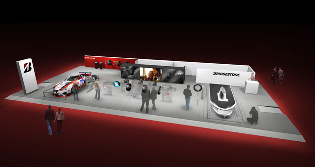 当社のグローバルプレミアムブランドであるPOTENZA(ポテンザ)、TURANZA(トランザ)、DUELER(デューラー)の代表的な製品を展示します。また「レーシングPOTENZA」を装着し「ニュルブルクリンク24 時間耐久レース」に出走した車両LEXUS LFAも展示します。 - (3)Firestoneブランドゾーン