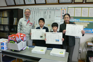今年は応募作品1,133点の中から「熊本工場長賞」14点、「熊本工場賞」21点と「団体賞」1校(大浜小学校)を決定。3月16日(月)に受賞者及び受賞校の表彰を行いました。また、「熊本工場長賞」の受賞者には副賞として、作品をプリントした掛け時計とカレンダーを贈呈しました。