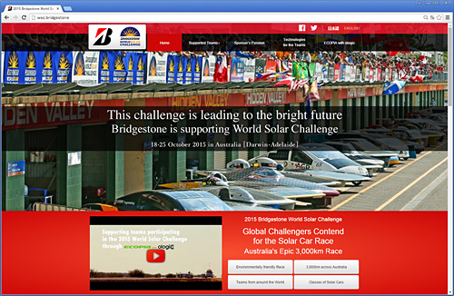「2015 Bridgestone World Solar Challenge」特設サイトオープン