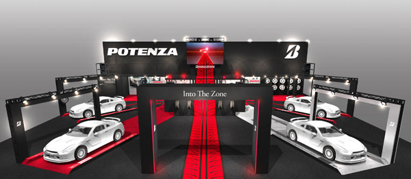 「POTENZA RACING TIRE」を装着したSUPER GT 500クラスの「AUTOBACS RACING TEAM AGURI」の車両や「POTENZA S001」を新車装着する「LEXUS LFA」、また「POTENZA RE-71R」※1を装着した「日産 GT-R」などを展示し、「最高の走りの歓び」を支える「POTENZA」の世界感を演出します。