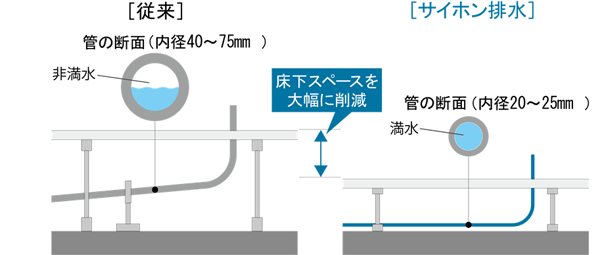 参考 : 2015年5月22日リリース 『これまでの排水の常識が変わる「サイホン排水システム」を3社共同開発』