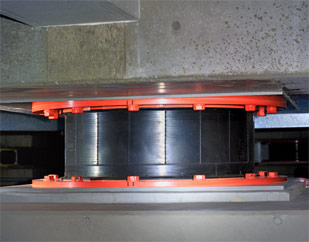 既存の建物の基礎や中間階に免震ゴムを設置することで、外観や内装及び設備などを損なうことなく免震建物に改修する構法