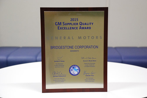 株式会社ブリヂストンの鳥栖工場と彦根工場は、General Motors Company(以下、GM社)の2015 Supplier Quality Excellence Awardを受賞しました。 本賞は、世界中のサプライヤーの中からGM社が定める製品品質や品質マネジメントシステムなど13項目の「品質」に関わる厳しい基準全てを満たした製造拠点に授与される栄誉ある賞です。当社鳥栖・彦根両工場は初めての受賞となりました。