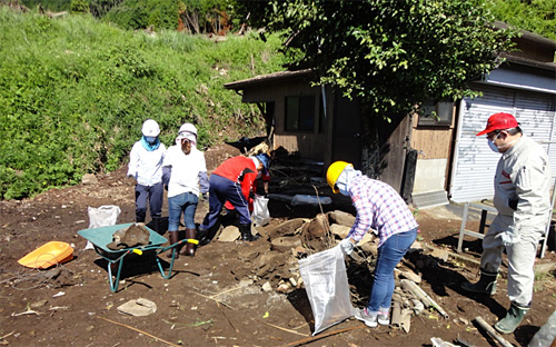 - :上記ボランティアセンターと協力し、被災者宅の土砂やがれきの撤去、家財片付け、清掃などの活動を実施