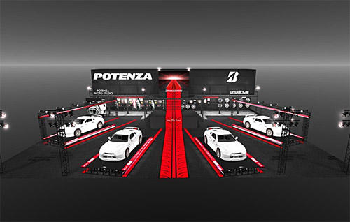 「POTENZA S007」を新車装着する「Aston Martin DB11」や、本年より「POTENZA」のレーシングタイヤを装着する「SUPER GT 300クラス」の車両、「POTENZA RE-06D」を装着し「TOYOTA GAZOO Racing 86/BRZ Race」の2016年プロフェッショナルシリーズでチャンピオンを獲得した車両、また「POTENZA RE-71R」を装着した「日産フェアレディZ」を展示し、「最高の走りの歓び」を足元から支える「POTENZA」の世界感を演出します。