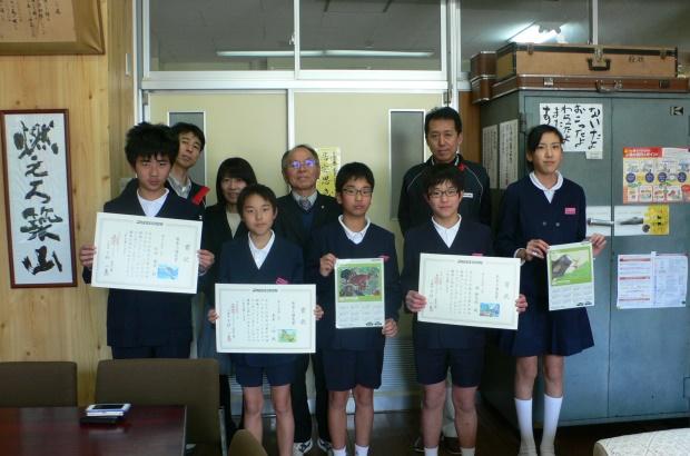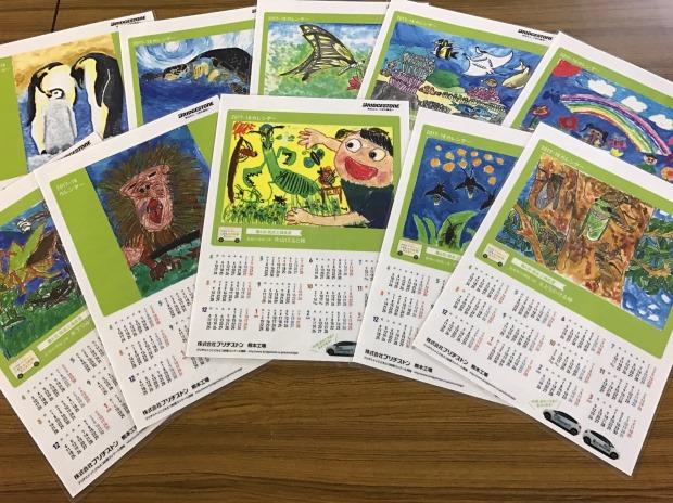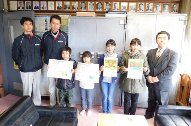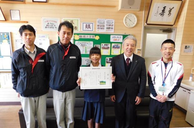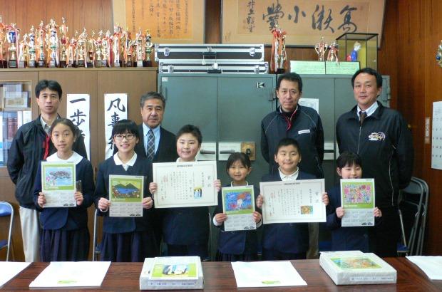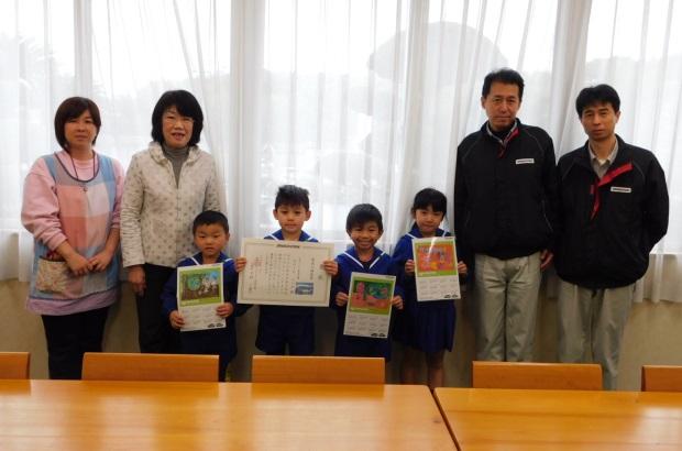 今年は応募作品1,210点の中から「熊本工場長賞」14点、「熊本工場賞」23点、「団体賞」1校(玉名小学校)を決定し、3月13日(月)から16日(木)にかけて受賞者及び受賞校の表彰を行いました。また、「熊本工場長賞」の受賞者には副賞として、受賞作品をプリントした掛け時計とカレンダーを贈呈しました。