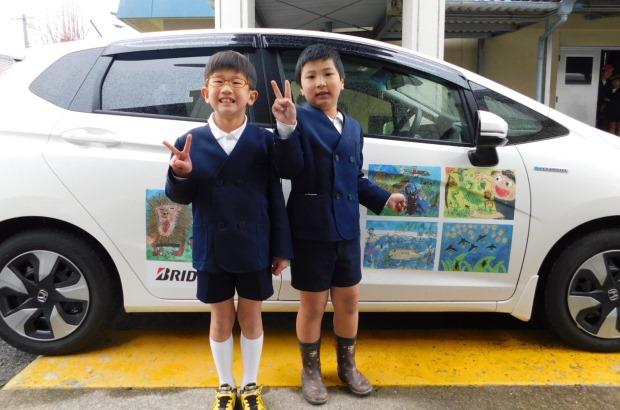 (受賞作品をプリントした社有車)
