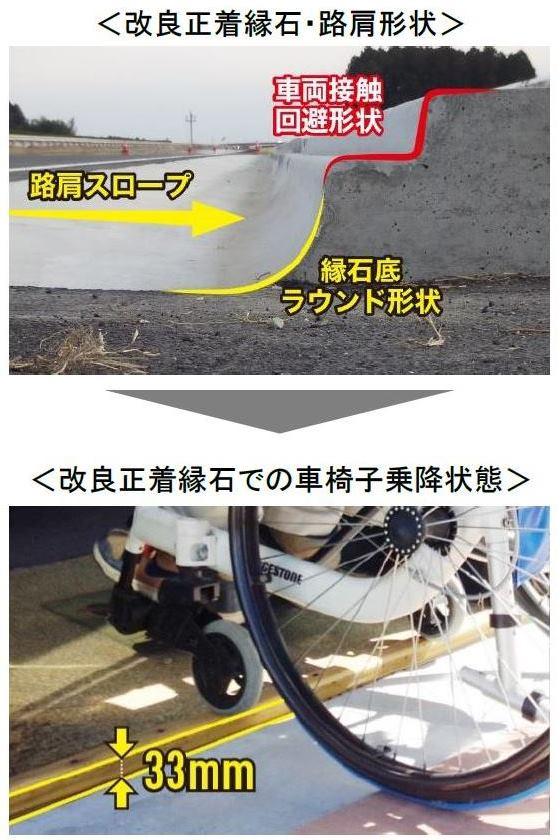 この新形状の適用により、更に25㎜の段差減少を実現(段差33㎜)し、バス乗降時の車椅子やベビーカー利用者の負担軽減に貢献できると考えております※。