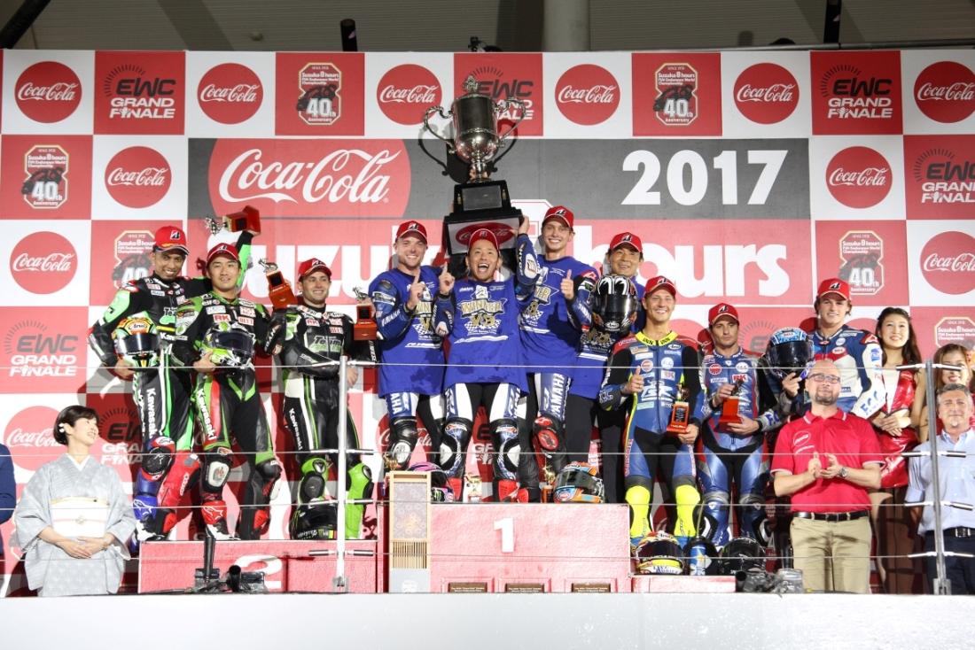株式会社ブリヂストンがサポートしたYAMAHA FACTORY RACING TEAM (ライダー: 中須賀克行 / Alex LOWES / Michael van der MARK)が、7月27~30日に開催された「2016-2017 FIM※ 世界耐久選手権シリーズ(以下、EWC) 最終戦“コカ•コーラ”鈴鹿8時間耐久ロードレース第40回記念大会(以下、鈴鹿8耐)」において優勝を飾りました。ブリヂストンタイヤ装着チームの優勝は、2006年の初優勝から12年連続となり、タイヤサプライヤーとしての連続優勝記録を更新しました。