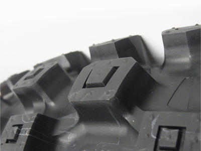 - ※2「Castle(キャッスル) Block(ブロック)」硬い土壌の上に土が浮いたような路面やレースインターバルの散水直後の路面は、非常に滑りやすくなります。「Castle Block」は、通常のブロック表面から一段飛び出たブロックを配置することで、滑りやすい路面に対して接地圧を高めます。それによりグリップ力を確保し、加速性能及びコーナーリング性能の向上を追求しています。
