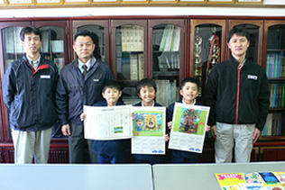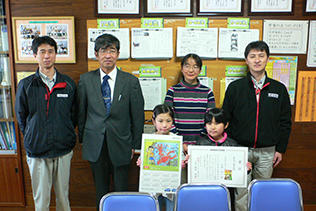 熊本工場では、より多くの近隣地域の子どもたちに当コンクールへ参加頂くことを目的に、2009年より地域表彰を実施しています。具体的には、近隣の小学校や保育園・幼稚園を対象に「熊本工場長賞」、「熊本工場賞」、「団体賞」を設定しています。今年は工場への応募作品1,956点の中から「熊本工場長賞」18点、「熊本工場賞」22点、「団体賞」1校(小天小学校)を決定し、3月5日から13日にかけて受賞者の表彰を行いました。「熊本工場長賞」の受賞者には副賞として、受賞作品をプリントした掛け時計とカレンダーを贈呈しました。