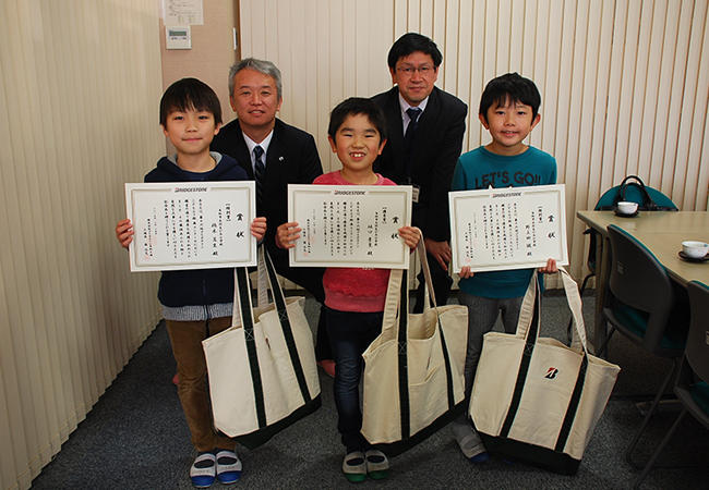株式会社ブリヂストンは、久留米、鳥栖、甘木の三つの工場で、「第16回ブリヂストンこどもエコ絵画コンクール※」に応募頂いた作品の中から、近隣の小学校や保育園・幼稚園を対象に、地域独自に設けた賞の受賞作品を決定し、その表彰を実施しました。