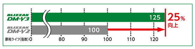 (3)「BLIZZAK DM-V3」と「BLIZZAK DM-V2」の摩耗ライフ比較結果