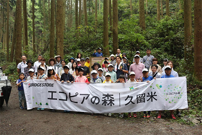 ブリヂストンは、2010年から森林整備活動「エコピアの森」プロジェクトを行っています。工場など国内事業拠点の周辺に森林整備区域「エコピアの森」を設け、間伐などの森林整備活動を実施しています。なお、「エコピア(ECOPIA)」は当社の低燃費タイヤで、「低燃費性能」、「安全性能」と「ライフ性能」を高次元で実現しています。