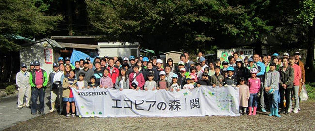 ブリヂストンは、2010年から森林整備活動「エコピアの森」プロジェクトを行っています。工場など国内事業拠点の周辺に森林整備区域「エコピアの森」を設け、間伐などの森林整備活動を実施しています。なお、「エコピア(ECOPIA)」は当社の低燃費タイヤで、「低燃費性能」、「安全性能」と「ライフ性能」を高次元で実現しています。