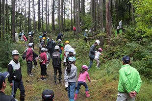 当日は雑草の刈り取りや間伐といった森林整備活動を実施し、参加者は清々しい汗を流しました。また、森の素材を用いた木工体験イベントも開催され、参加者はオリジナルの竹とんぼづくりを楽しみました。