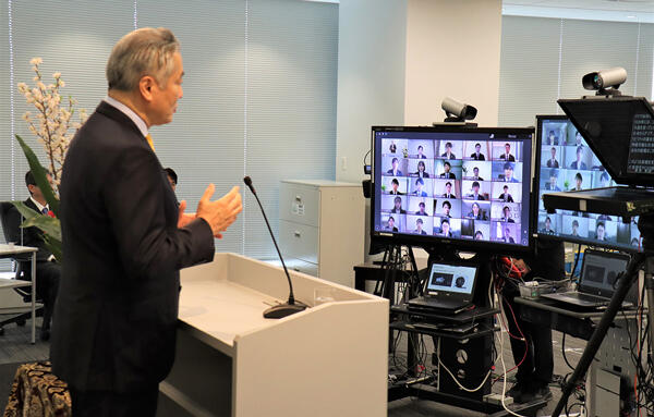 株式会社ブリヂストンは、2021年4月1日に当社として初めてオンライン形式で入社式を開催しました。入社式には、2021年4月入社の当社新入社員69名※がオンラインで出席し、当社 取締役 代表執行役 Global CEO石橋 秀一が新入社員に向けたメッセージを述べました。