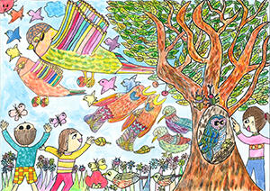ブリヂストングループでは、環境に対する取り組みの一環として、2003年より毎年「ブリヂストンこどもエコ絵画コンクール」を開催しており、現在まで、延べ583,941 の作品が寄せられました。当コンクールでは、子どもたちに環境・自然をテーマに絵を描いてもらうことを通じて、大人も含めた多くの人々に環境・自然の大切さを伝えていきたいと考えています。
