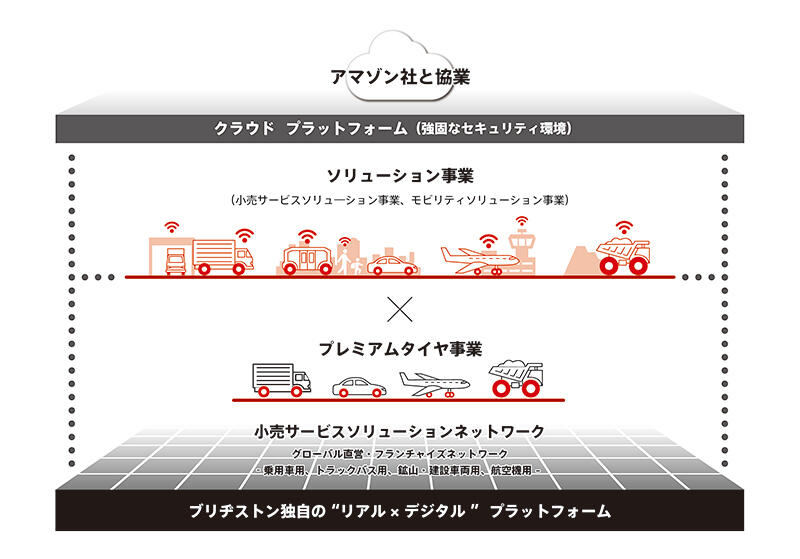 ブリヂストングループ(以下「ブリヂストン」)は、小売サービスソリューション事業やモビリティソリューション事業を強化するため、Amazon Web Services, Inc.(以下「AWS」)と戦略的な協業を開始します。AWSのInternet of Things(IoT)や機械学習、データ分析、ビジネスインテリジェンスサービスを活用したデジタルプラットフォームを構築し、顧客経験価値の向上を中心としたソリューションを拡充し、新たな価値を創出していきます。