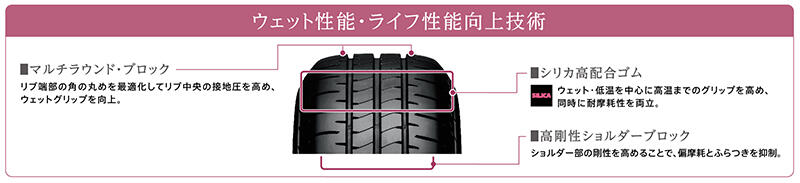 - ※ 低燃費タイヤ等のラベリング制度における、ラベリング表示は全65サイズ、「A-b」となります。