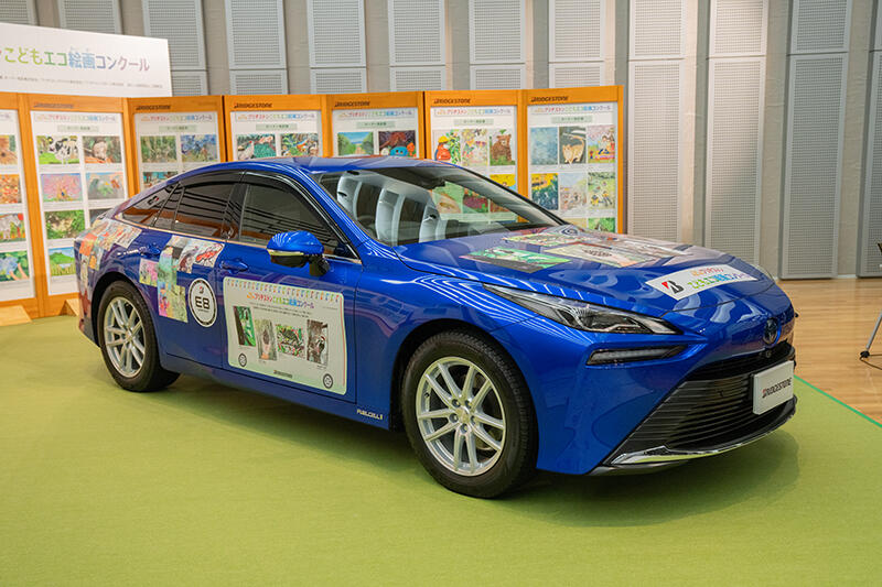 今回の募集テーマは「みんなでまもる すてきなしぜん」。日常のなかにある自然との繋がりや、こうありたいと願う自然との共生を題材にした、自由で個性あふれる作品が集まりました。全国各地から26,536点の応募を頂き、その中から公正かつ厳正な審査の結果、ブリヂストン大賞をはじめとする100点の入賞作品を選出し、4月3日に表彰式を行いました。表彰式では、応募作品をデザインしたトヨタ自動車株式会社の燃料電池自動車「MIRAI」も公開しました。