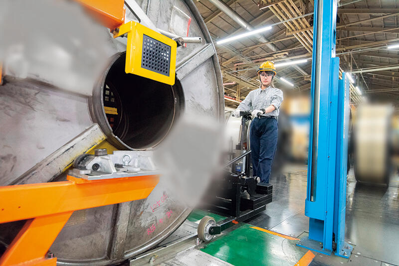 従来から、力が必要な作業などは当たり前のように男性従業員が担当していました。その作業のひとつが、最大800キロにもなるリール状のタイヤ部材の運搬と、そのリールを所定の製造設備にセットする作業です。これまでは「女性にはできない」ということを当たり前のこととして、男性従業員が部材を転がして運搬し、設備にセットしていました。