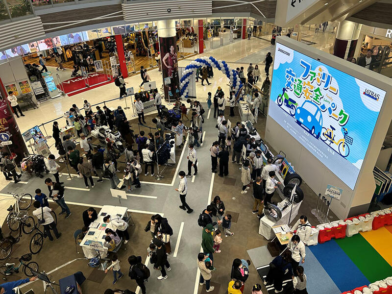 また、「ファミリー交通安全パーク」は、株式会社ブリヂストン、ブリヂストンタイヤソリューションジャパン株式会社、ブリヂストンモーターサイクルタイヤ株式会社、ブリヂストンサイクル株式会社が協力し、ブリヂストングループが一体となって実施するものです。このイベントは、クルマに加えて、バイク、自転車の安全啓発を実施し、子供から大人までファミリーで楽しみながら、幅広く交通安全の大切さを体感いただくとともに、知識を深めることを狙いとしています。