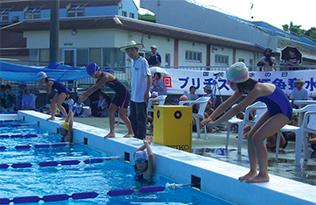 操業開始して間もない1975年に、地域活性化の一環として近隣の小学生を対象とした水泳大会「ブリヂストン杯学童水泳大会」を開催し、以降毎年8月に開催しています。現在では地元に根付いた歴史ある大会となっており、毎年約150名の小学生が参加しています。