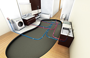 併せて、戸建・集合住宅等の給水・給湯配管システムに使用される樹脂配管を生産しています。これらの製品は、樹脂製のため、錆や腐食がないことや、軽量で柔軟性に優れ、振動にも強いことが特長です。また、施工性にも優れており、配管作業の省力化・効率化にも貢献しています。