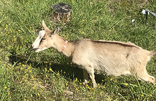 環境に優しい除草活動として、工場敷地周辺緑地において「ヤギ放牧による除草」を実施しています。焼却されていた雑草をヤギに食べてもらう事でCO2排出量削減にも貢献しています。