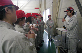 関工場では2002年より看護学生の学外実習受け入れを行っています。将来の地域医療の維持・発展に貢献することを目的として看護師・保健師の担い手となる学生の方々へ「労働の場で健康を維持増進する仕組み」や「企業における産業看護の実際」を学んで頂いています。