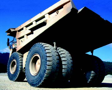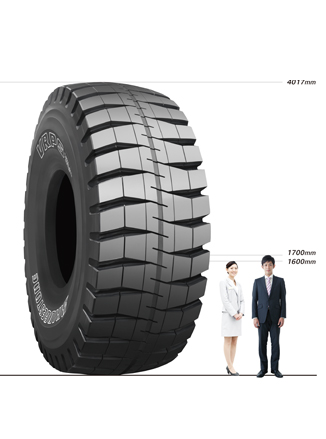 下関工場では、世界最大級となる外径約4m、幅約1.5m、重量約5.5tの世界最大級のタイヤも生産しています。これは露天掘り鉱山で活躍する400tダンプトラックに装着されるものです。こうした超大型建設・鉱山車両用タイヤの生産には高度な生産技術や、大型特殊設備を要するため、生産を行う工場は世界でも限られています。
