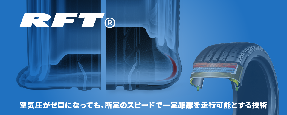空気圧がゼロになっても、所定のスピードで一定距離を走行できるタイヤ「ランフラットテクノロジー採用タイヤ」をご紹介します。