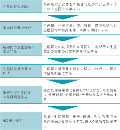 これは工場の新設に際して、環境計画の策定や、工場や生産ラインの新設時における初期環境調査の実施、環境方針の策定、法令遵守の徹底、環境関連の教育訓練について、段階的に環境マネジメント体制を監査し認定するシステムです。