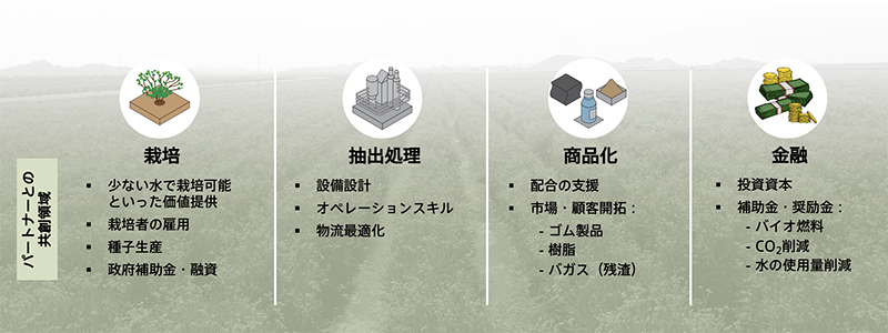 将来の天然ゴム供給源の多様化に向けた取り組み