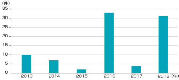 ブリヂストンでは、事業活動による環境への影響を改善するため、「環境異常発生件数」を把握しています。「環境異常」とは、法令不遵守の事例や地域の皆様からの環境に関わるご意見を踏まえ、改善を必要とする事案を独自の基準で判定したものです。個々の事業所において速やかに対処していくほか、事例の分析結果を今後の未然防止対策に活用しています。