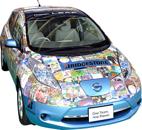 地球に優しい100%電気自動車「日産リーフ」に受賞作品101点をデザインしました。